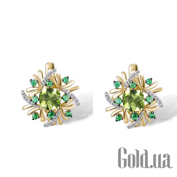 Безграничное очарование такого истинно сказочного аксессуара, как эти восхитительные золотые серьги, изысканно усеянные множеством драгоценных камней, мгновенно привлекает взоры окружающих к элегантному образу владелицы украшения. Неординарность филигранного орнаментального оформления в гармоничном, волшебном сочетании с ярким цветовым решением представлена вдохновенной работой искусных гонконгских мастеров популярного ювелирного дома Lurie Jewelry. Однако эксклюзивным это украшение делает не только неординарность дизайна, но и колористическая композиция серег: в центре её кристально отблескивает оливковый оттенок шпинели четырехгранной округлой формы, что уместно подчеркнут яркими насыщенными темно-зелеными вкраплениями изумрудов. Королевский шарм придает серьгам белоснежное сияние ослепительных бриллиантовых лепестков.