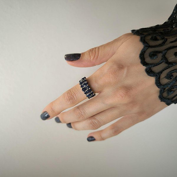 Женское серебряное кольцо с сапфирами