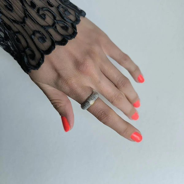 Измерьте рулеткой окружность пальца, на котором будете носить кольцо (или замерьте ниткой и приложите к линейке)