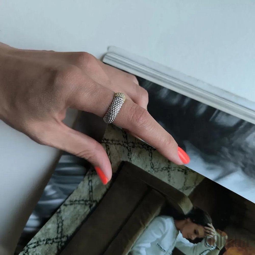 Женское серебряное кольцо с куб. циркониями в позолоте