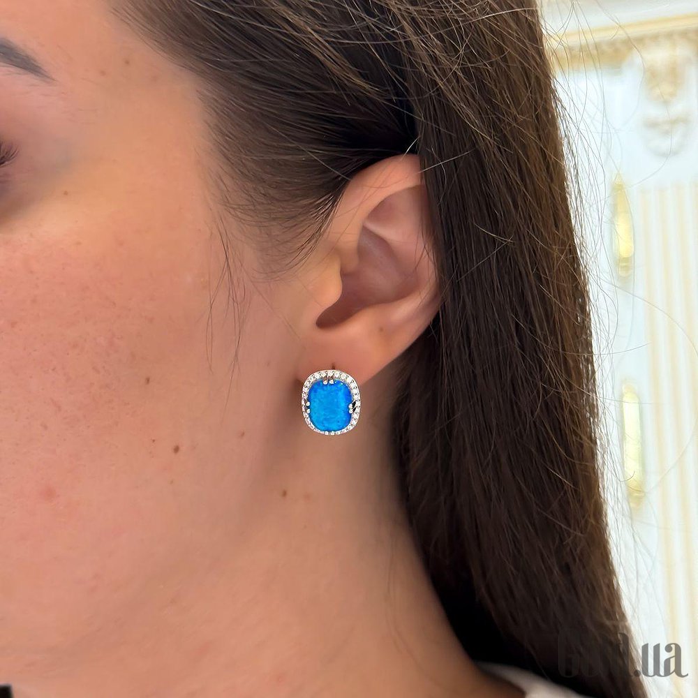 Серебряные серьги с куб. циркониями и опалами