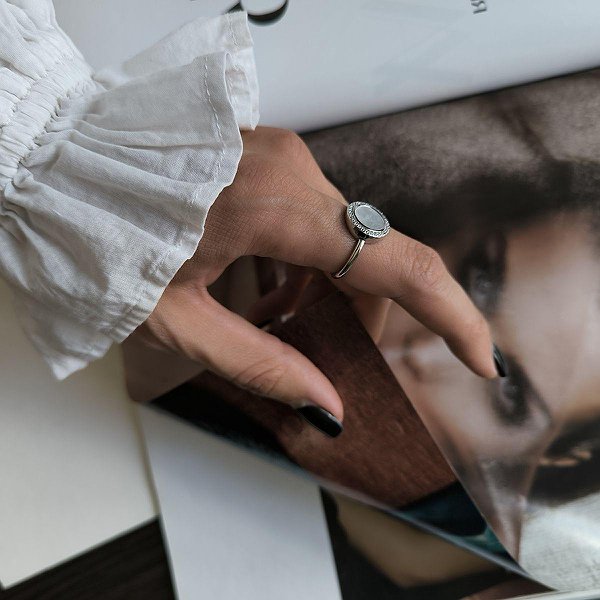 Женское серебряное кольцо с куб. циркониями и перламутром