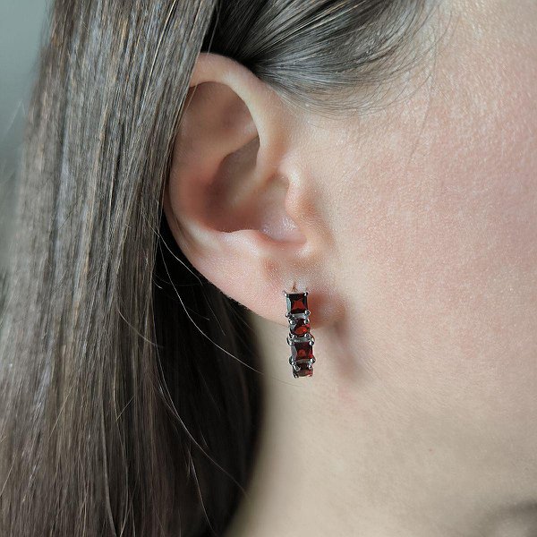 Cеребряные серьги с гранатами