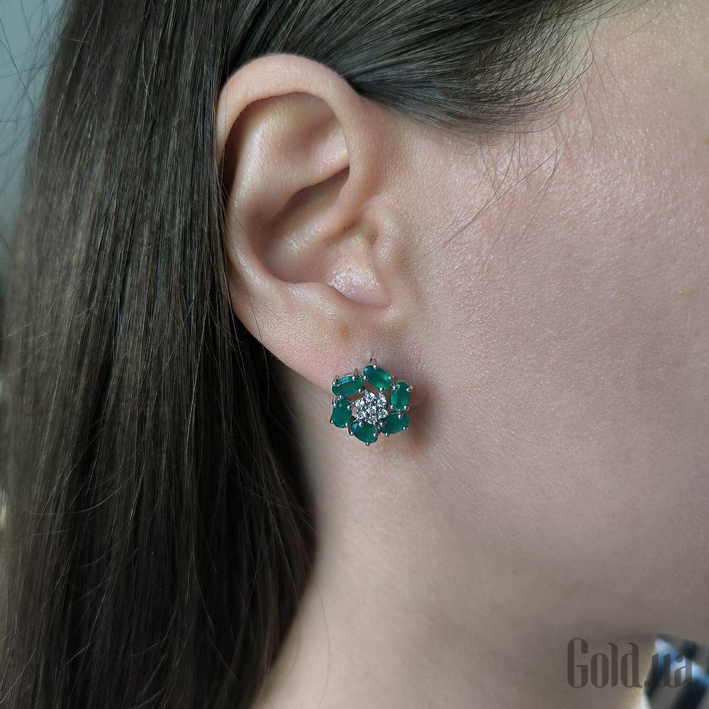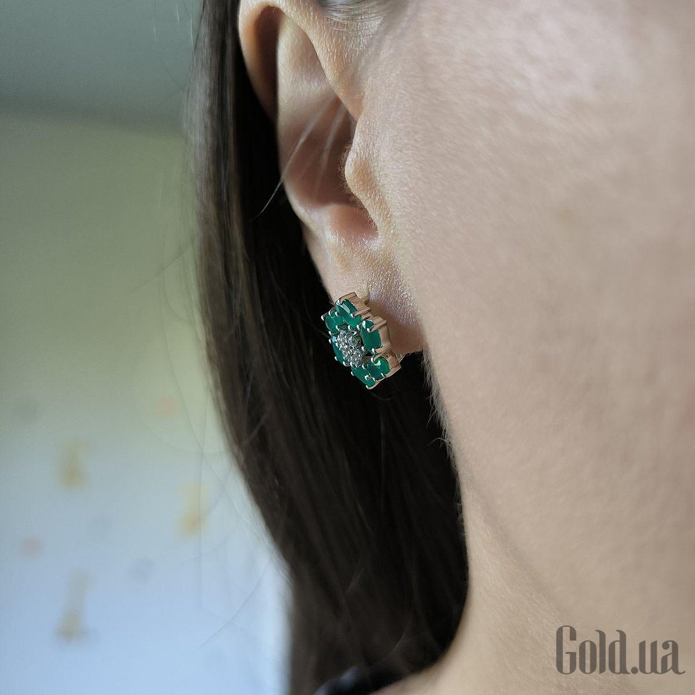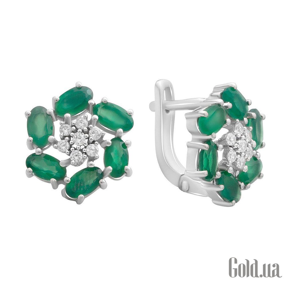 Серебряные серьги с куб. циркониями и агатами