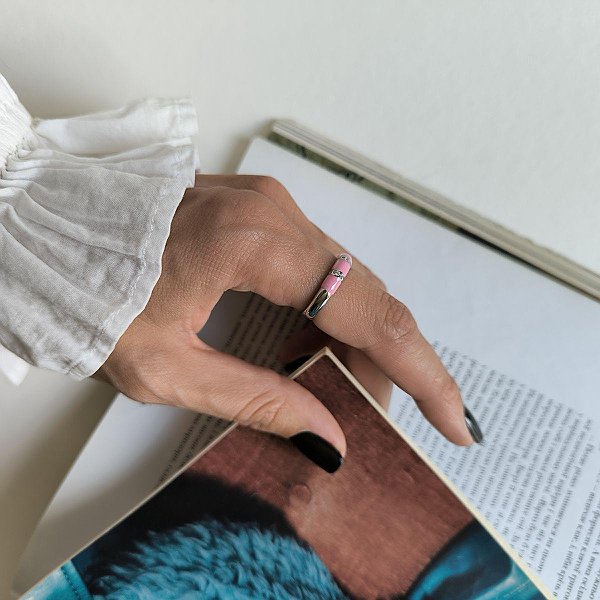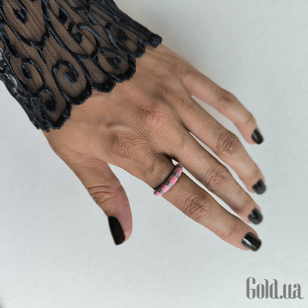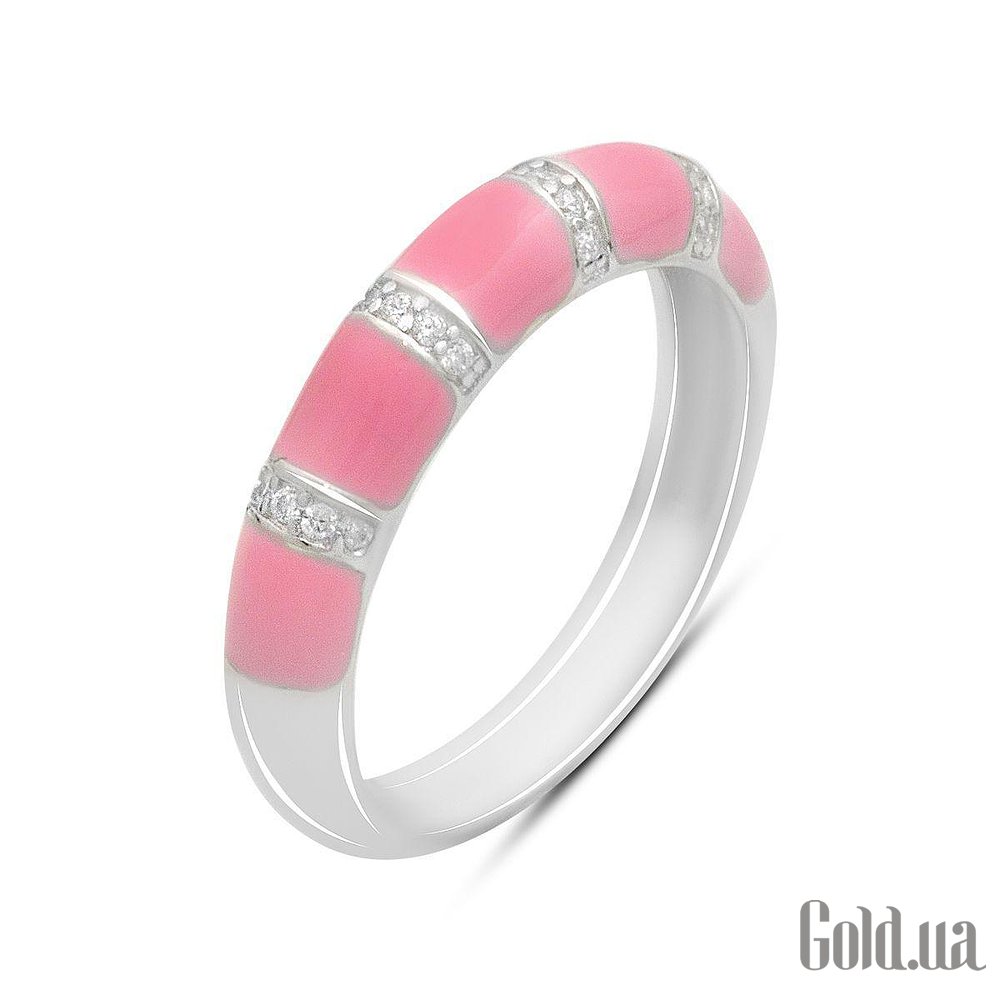 Женское серебряное кольцо с куб. циркониями и эмалью