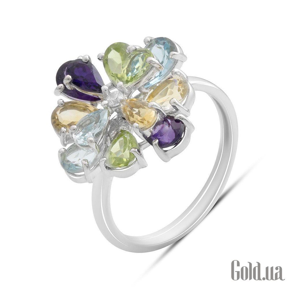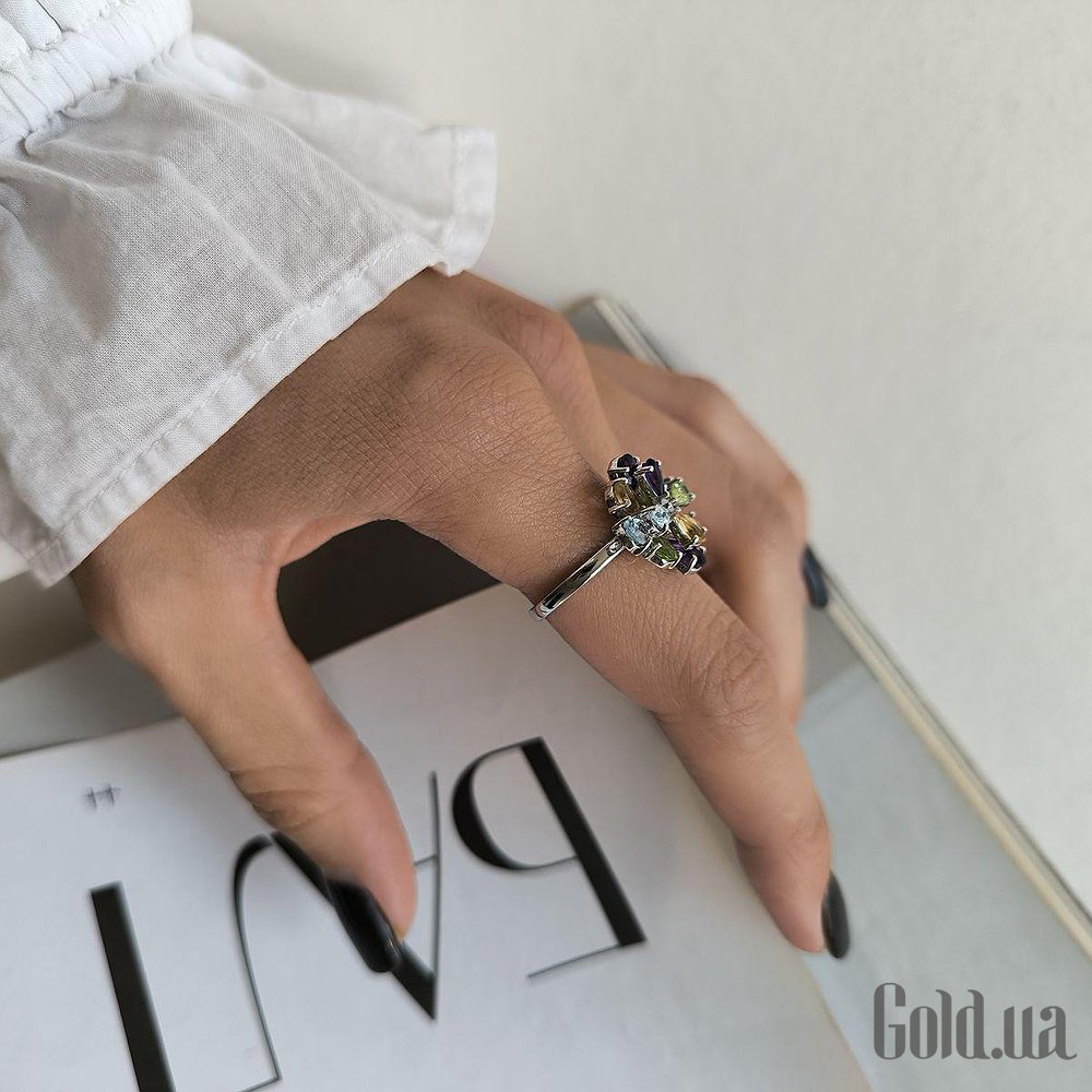 Женское серебряное кольцо с аметистами, цитринами, хризолитами и топазами