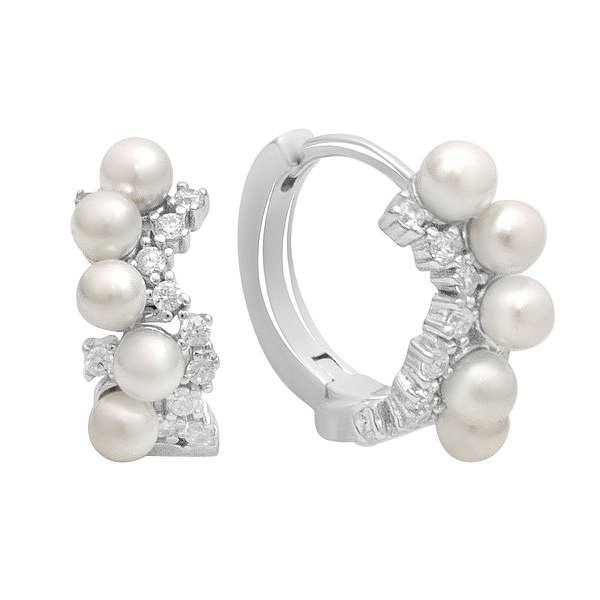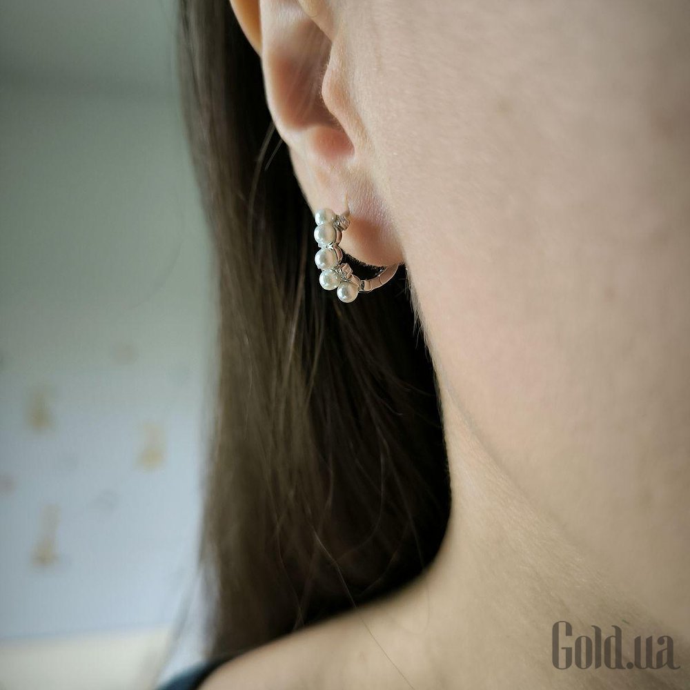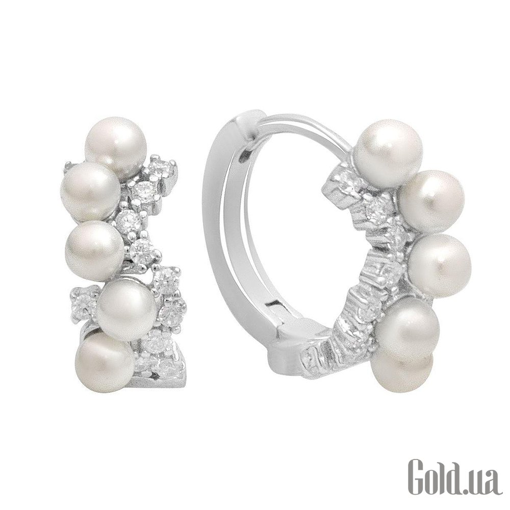 Серебряные серьги с куб. циркониями и культив. жемчугом