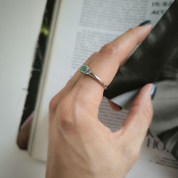 Женское серебряное кольцо с изумрудами