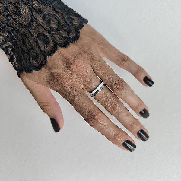 Серебряное обручальное кольцо с куб. циркониями и эмалью