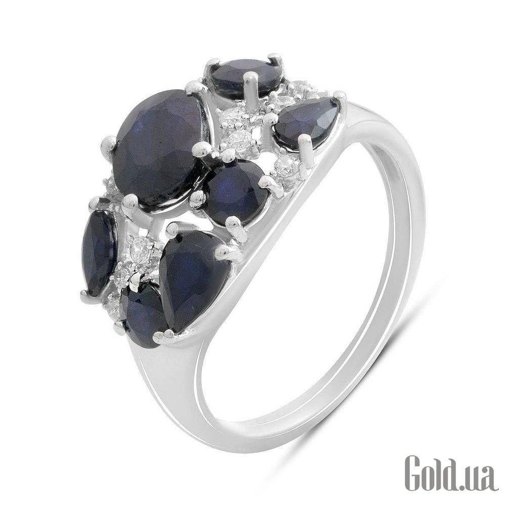 Женское серебряное кольцо с куб. циркониями и сапфирами