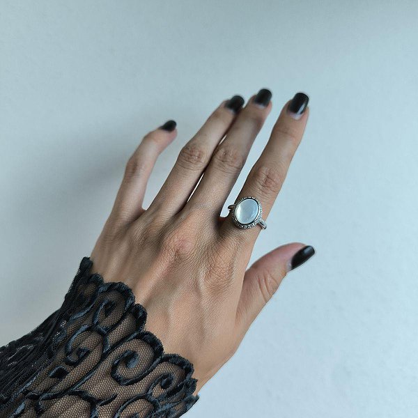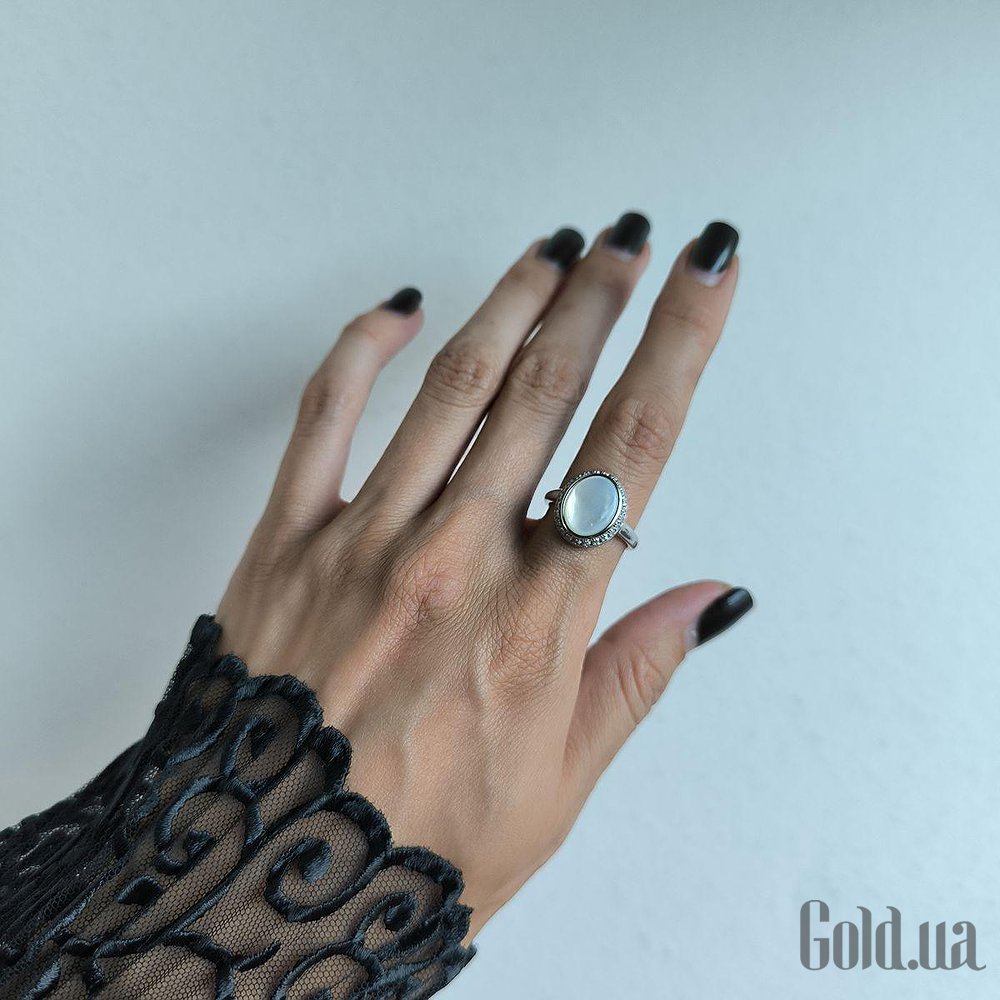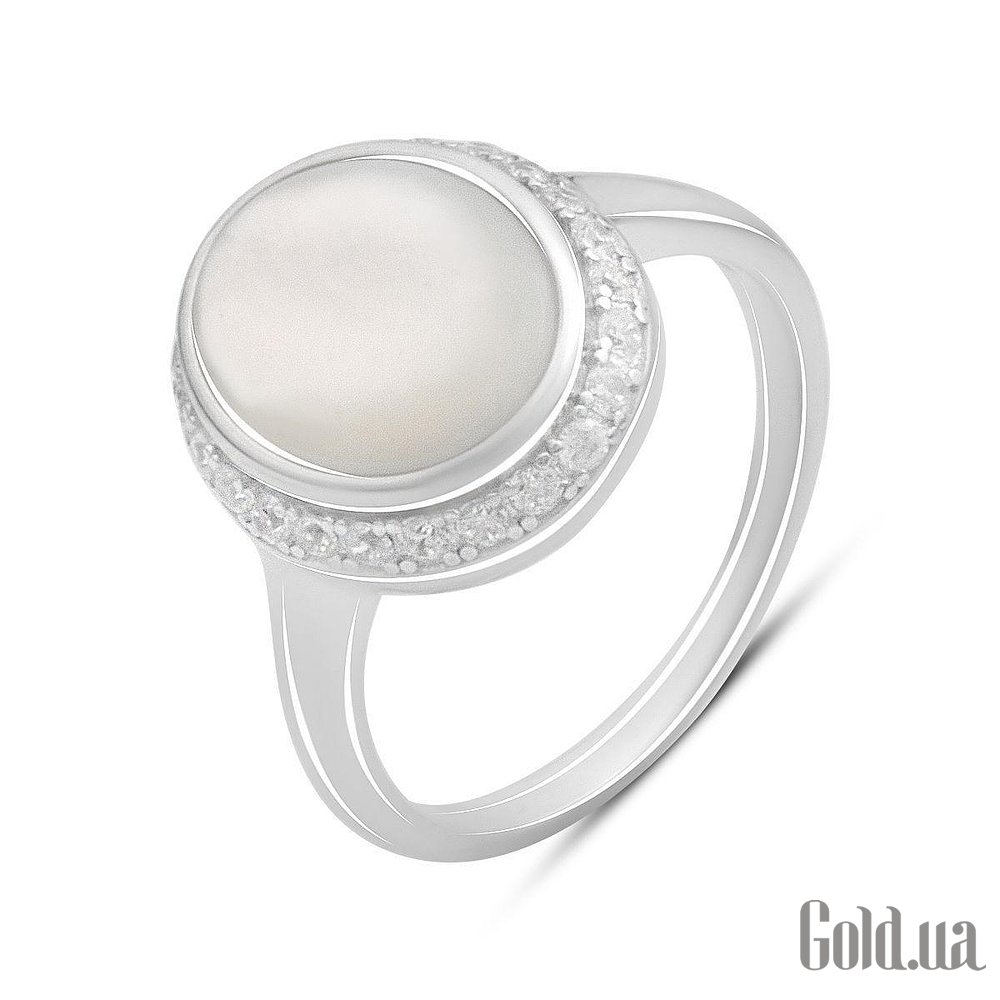 Женское серебряное кольцо с куб. циркониями и перламутром