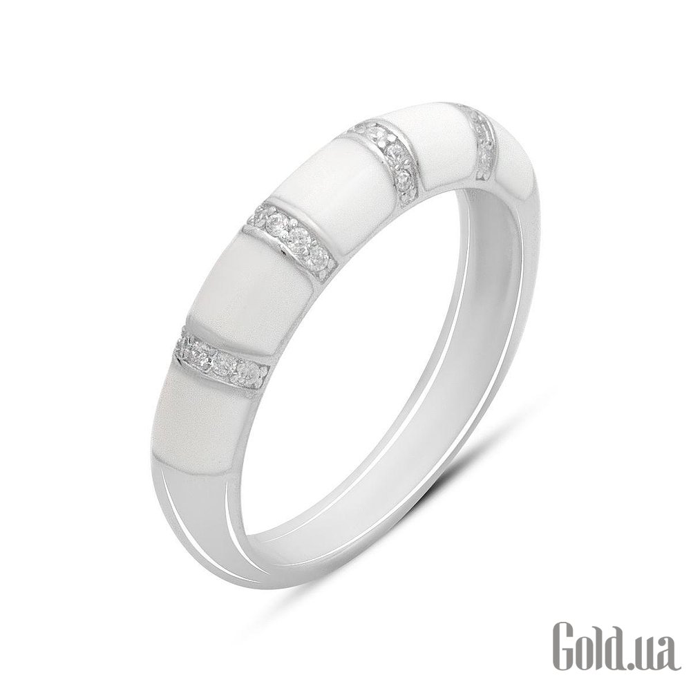 Женское серебряное кольцо с куб. циркониями и эмалью