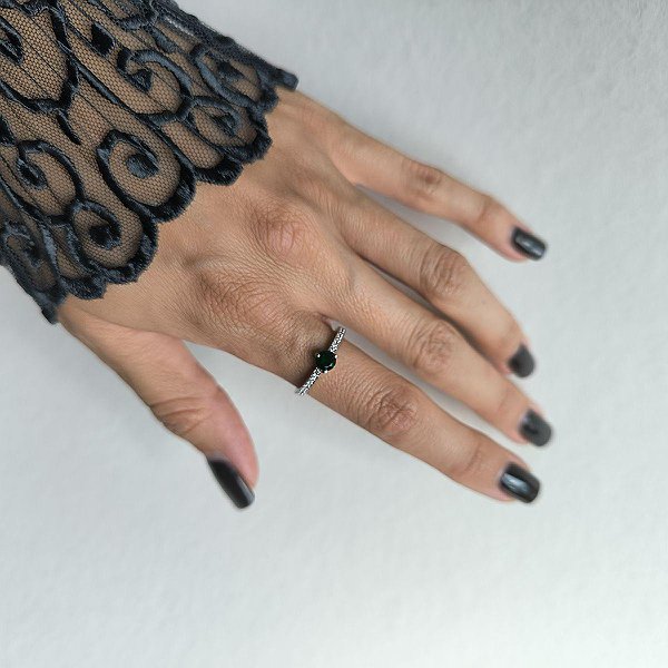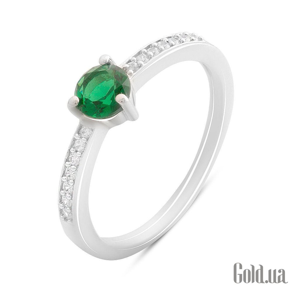 Женское серебряное кольцо с куб. циркониями и синт. изумрудом