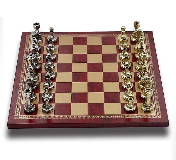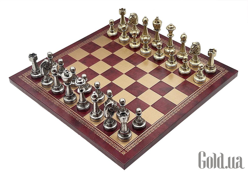 Доска изготовлена из экокожи и дерева. Размеры доски: 33 x 33 x 1,5 cm, размер квадрата: 3,5 cm. Фигурки коллекции "Staunton" изготовлены из латуни и никелевого покрытия. Размер короля: 7,5 cm - Ø base 2,5 cm. Вес шахматных фигурок: 2270 грамм. Основа фигурок с фетровой накладкой и логотипом Italfama.