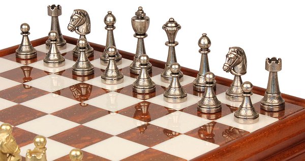 Доска изготовлена из дерева и мрамора. Размеры доски: 47 x 47 x 10,5 cm, размер квадрата: 4,5 cm. Фигурки коллекции "Staunton" изготовлены из латуни и никелевого покрытия. Размер короля: 7,5 cm - Ø base 2,5 cm. Вес шахматных фигурок: 2270 грамм. Основа фигурок с фетровой накладкой и логотипом Italfama.