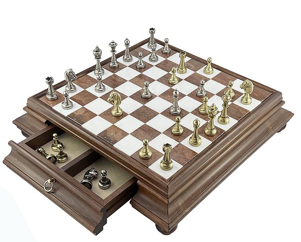 Шахматная доска выполнена из дерева и мрамора. Ее массивная конструкция придает престижный вид и обеспечивает долговечность.