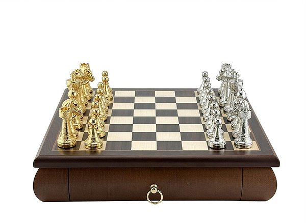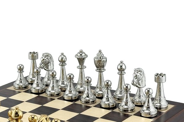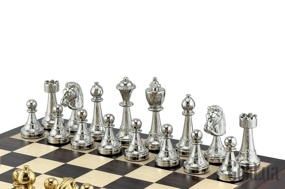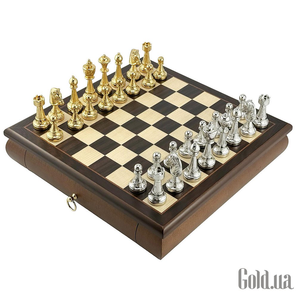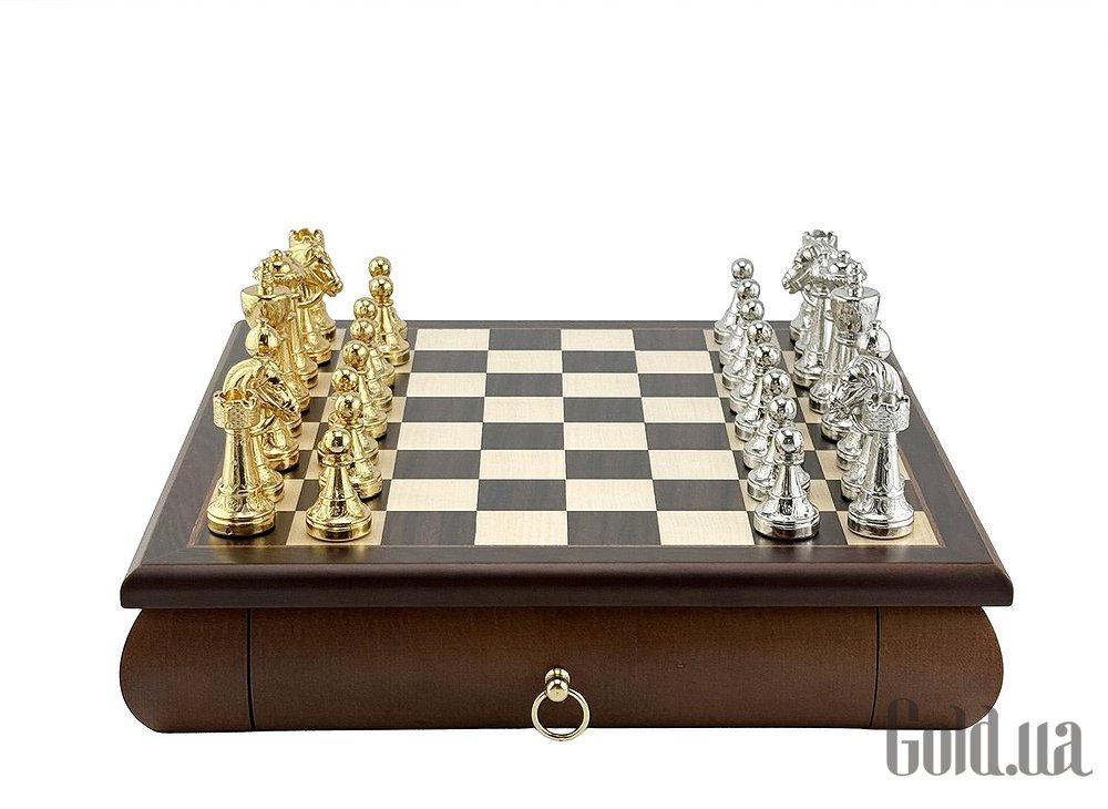 Шахматная доска всемирно известного итальянского бренда Italfama. Изготовлена из дерева. Размеры доски: 32 x 32 x 6 cm, размер квадрата: 3,5 cm. Фигурки коллекции Staunton изготовлены из цинка + позолота 24К и серебро 925 пробы. Размер короля: 7,5 cm - Ø base 2,5 cm. Вес шахматных фигурок: 2270 грамм. Основа фигурок с фетровой накладкой и логотипом Italfama.