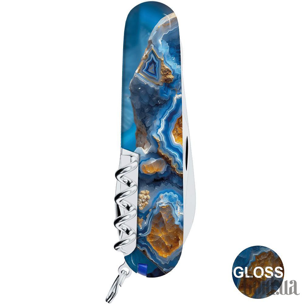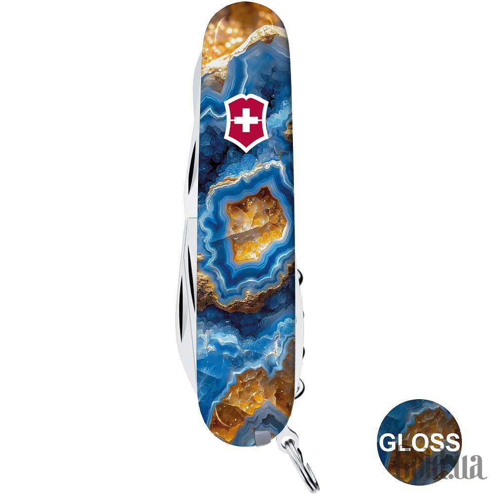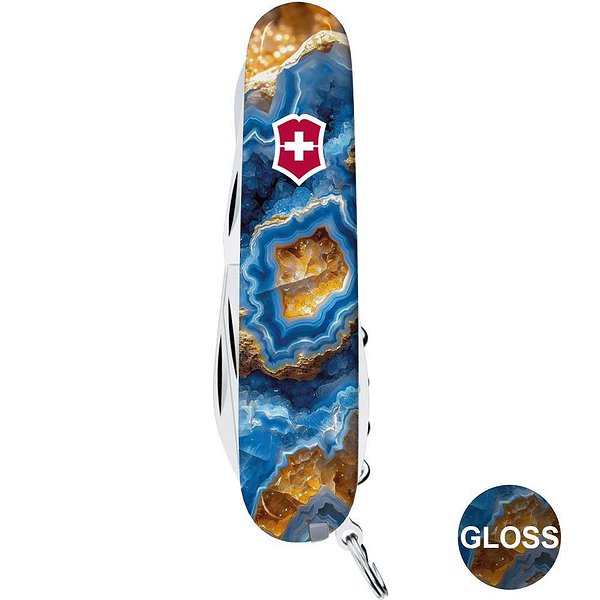 Функции: Кольцо для ключей, Пинцет, Зубочистка, Ножницы, Штопор, Малое лезвие, Булавка, Крючок многоцелевой, Большое лезвие, Шило - кернер, Открывалка для бутылок, Малая плоская отвертка, Консервный нож, Большая плоская отвертка, Паз для снятия изоляции