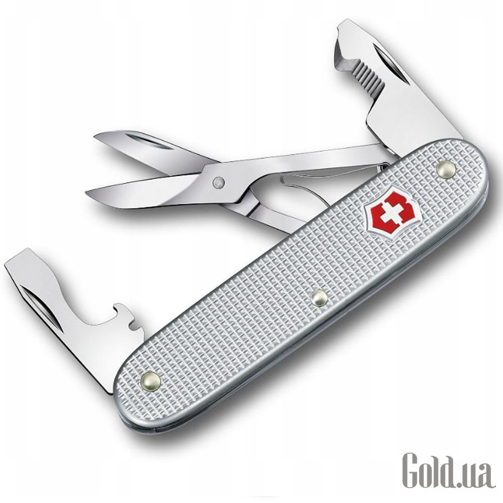 Функции: Ножницы, Открывалка для бутылок, Малая плоская отвертка, Большая плоская отвертка, Паз для снятия изоляции, Открывалка для коробок