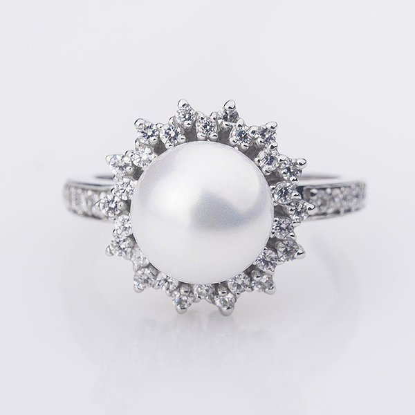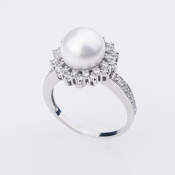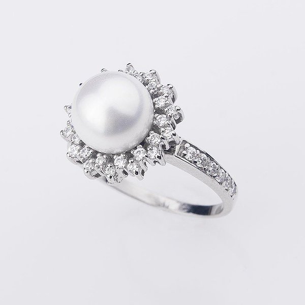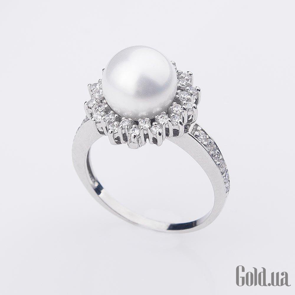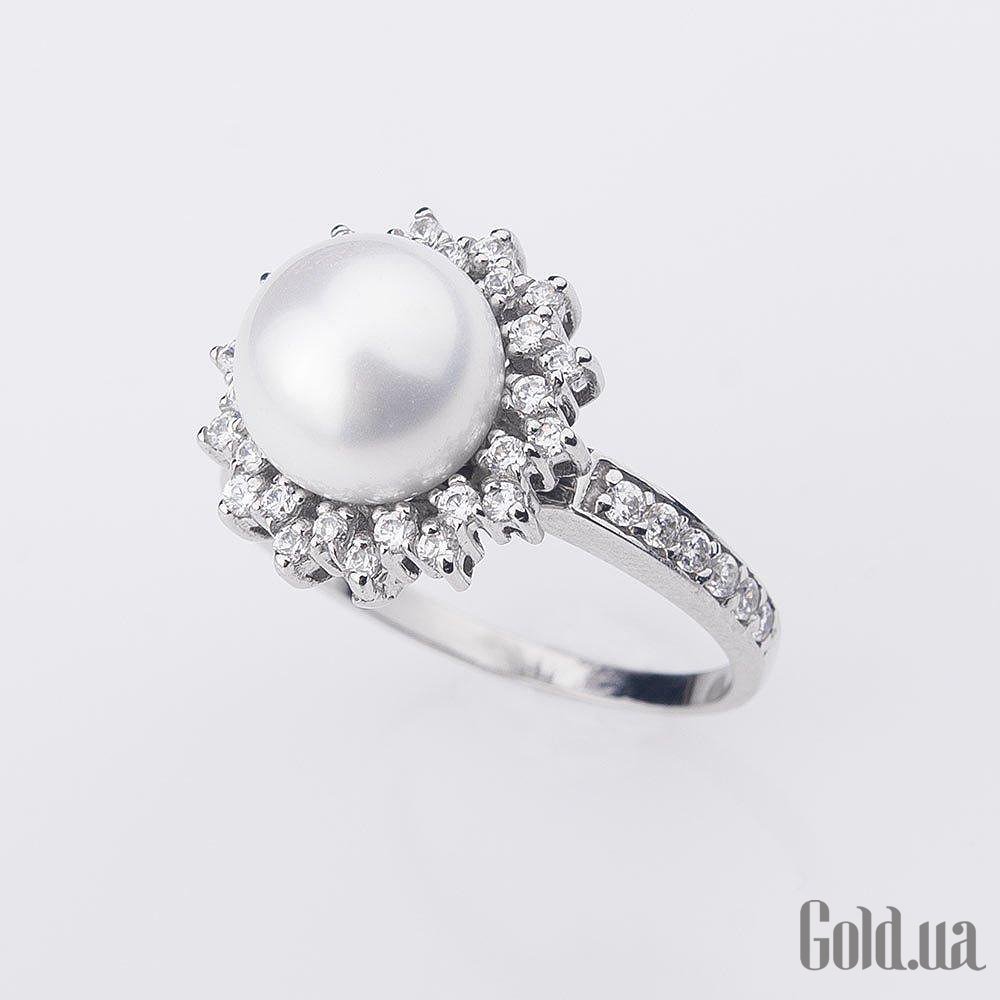 Женское золотое кольцо с куб. циркониями и искусств. жемчугом