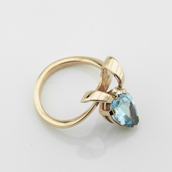 Женское золотое кольцо с бриллиантами и топазом