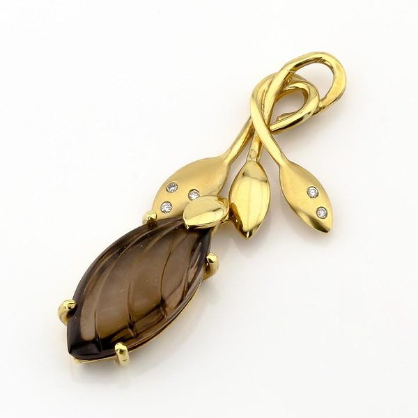 Золотой кулон с дымчатым кварцем и бриллиантами
