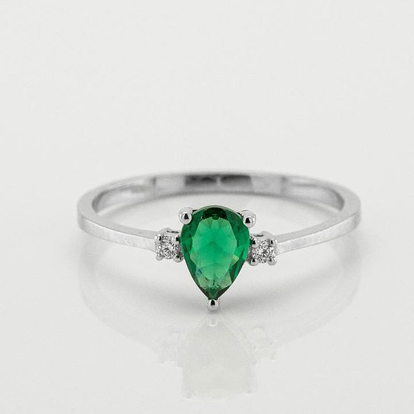 Женское золотое кольцо с бриллиантами и синт. изумрудом