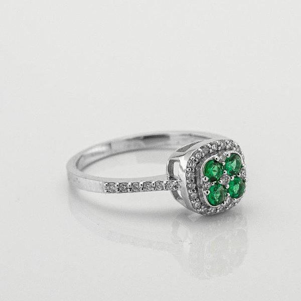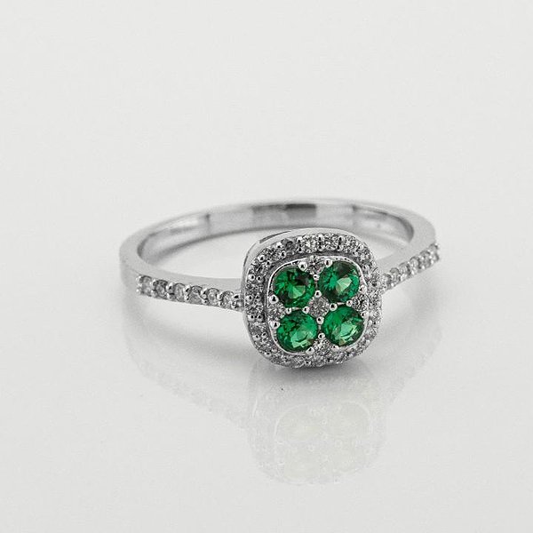 Женское золотое кольцо с бриллиантами и синт. изумрудом