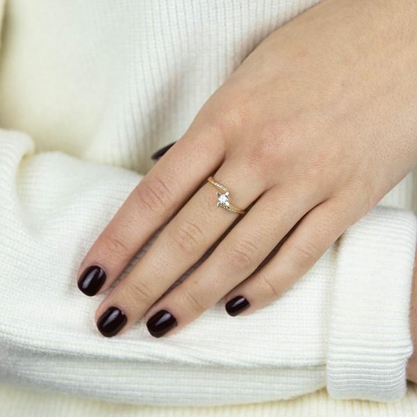 Измерьте рулеткой окружность пальца, на котором будете носить кольцо (или замерьте ниткой и приложите к линейке)