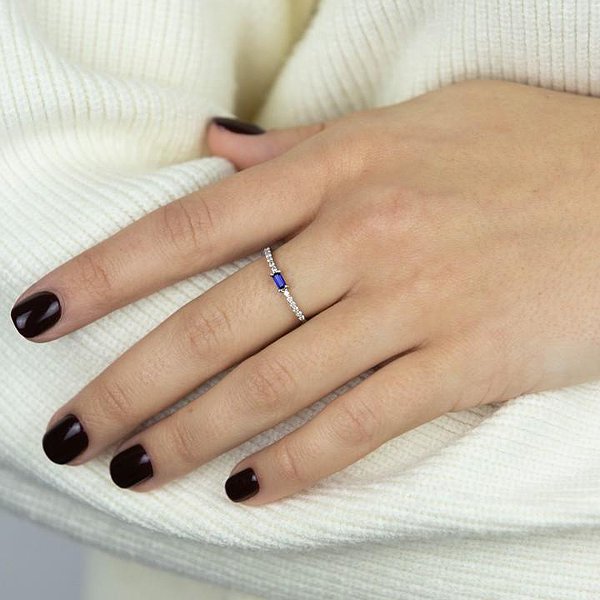 Женское золотое кольцо с бриллиантами и сапфиром
