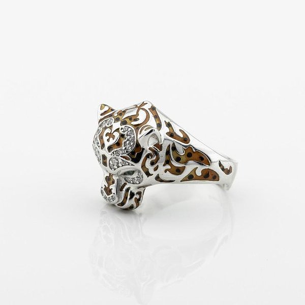 Женское серебряное кольцо с куб. циркониями и эмалью
