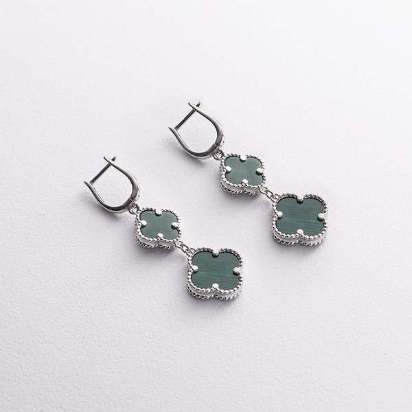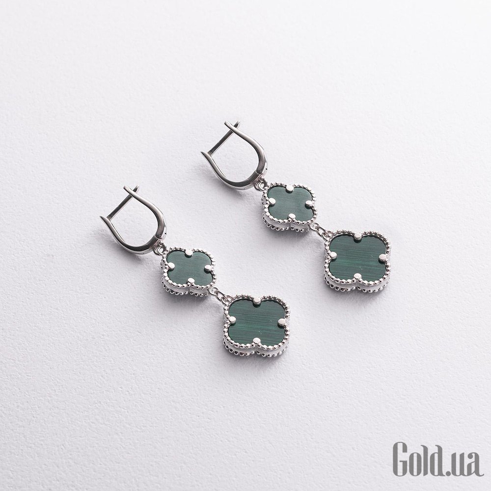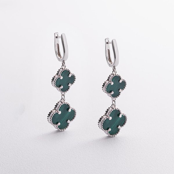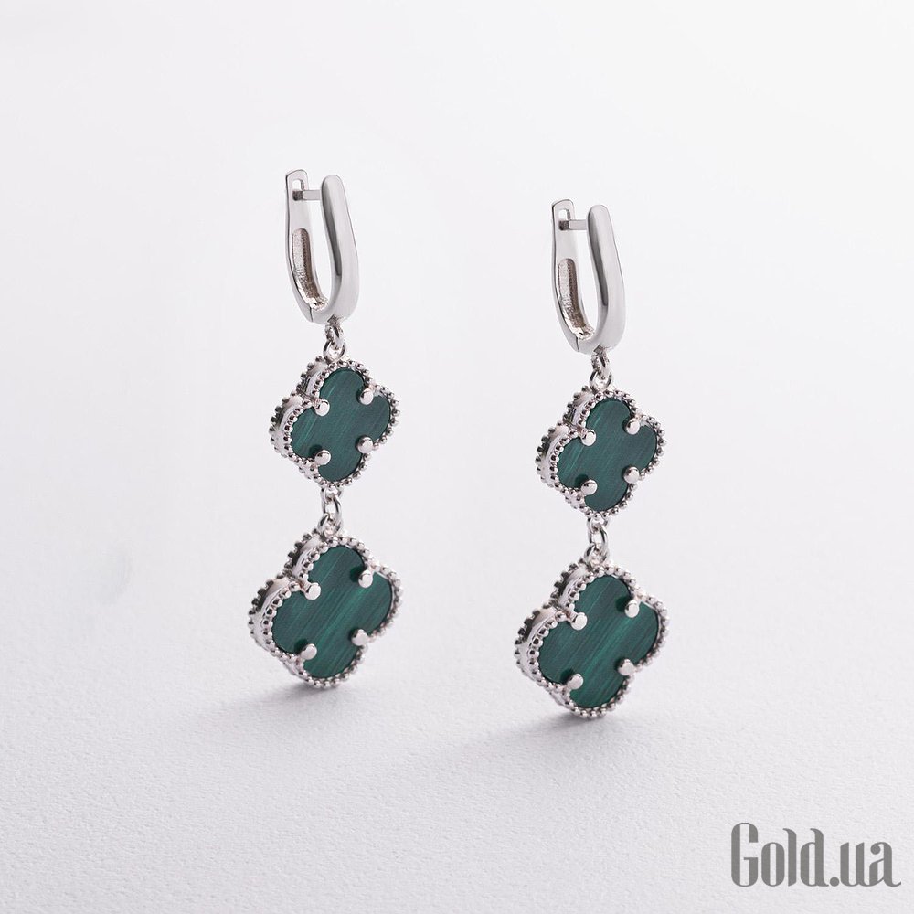 Серебряные серьги с синт. малахитами