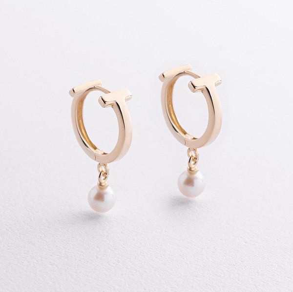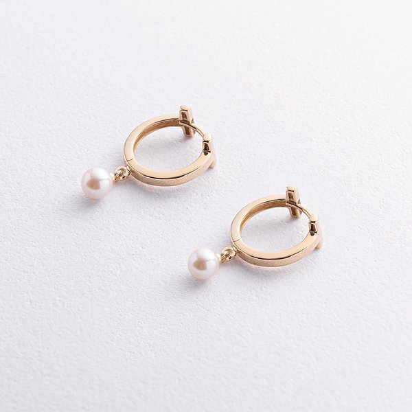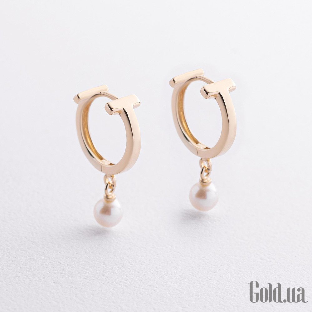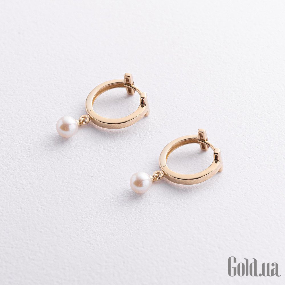 Золотые серьги с культив. жемчугом