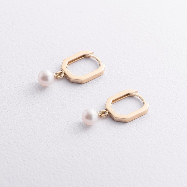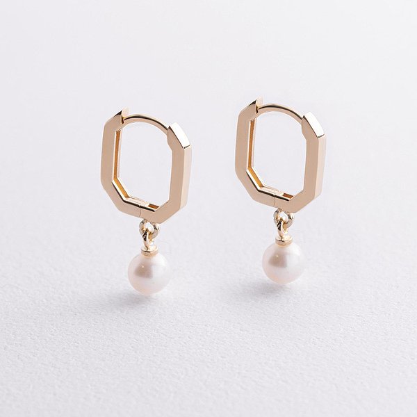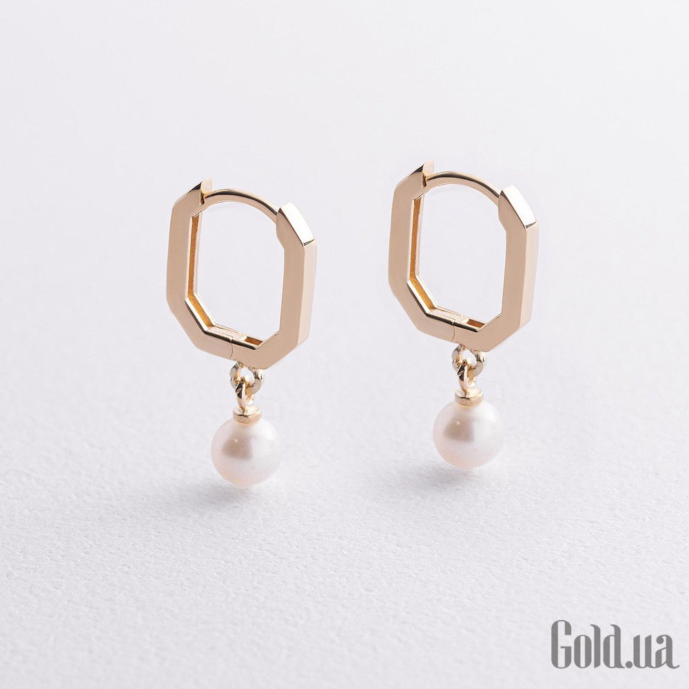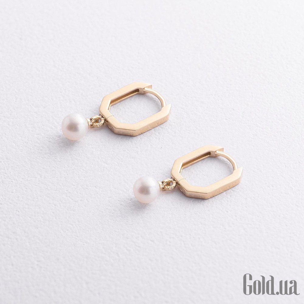 Золотые серьги с культив. жемчугом