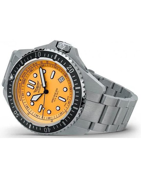 Циферблат: Оранжевый глубокий матовый циферблат, металлические накладные индексы, заполненные материалом SuperLuminova