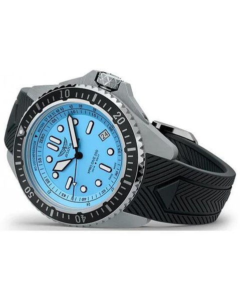 Циферблат: Небесно-голубой глубокий матовый циферблат, металлические накладные индексы, заполненные материалом SuperLuminova