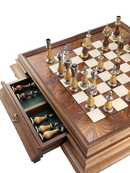 Фигурки коллекции Staunton изготовлены из дерева,цинка, латуни, никеля.
