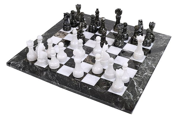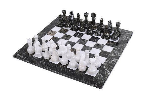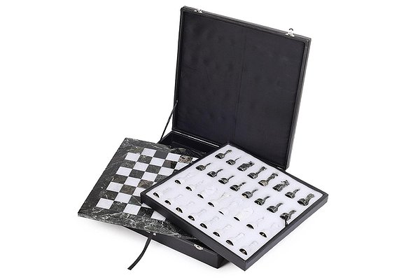 Уникальный шахматный набор, доска и фигурки изготовленные из мрамора. Дополнительно в комплектацию входит кейс для хранения шахматных фигурок и доски.