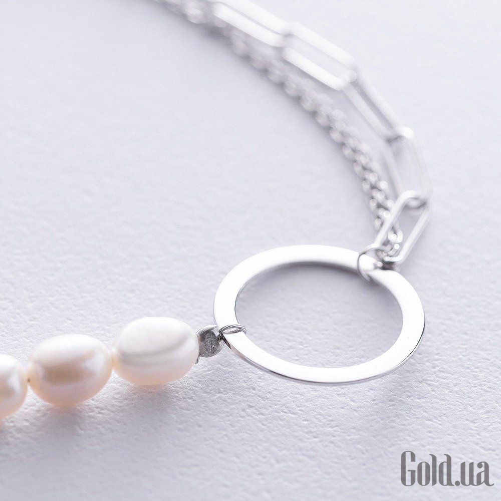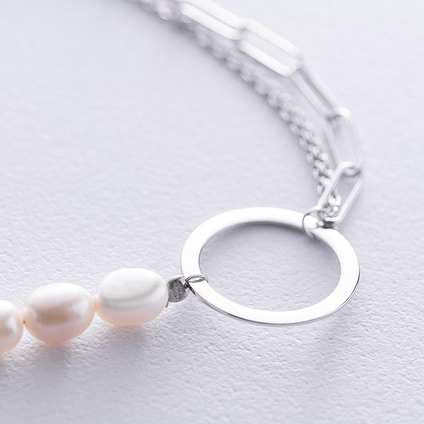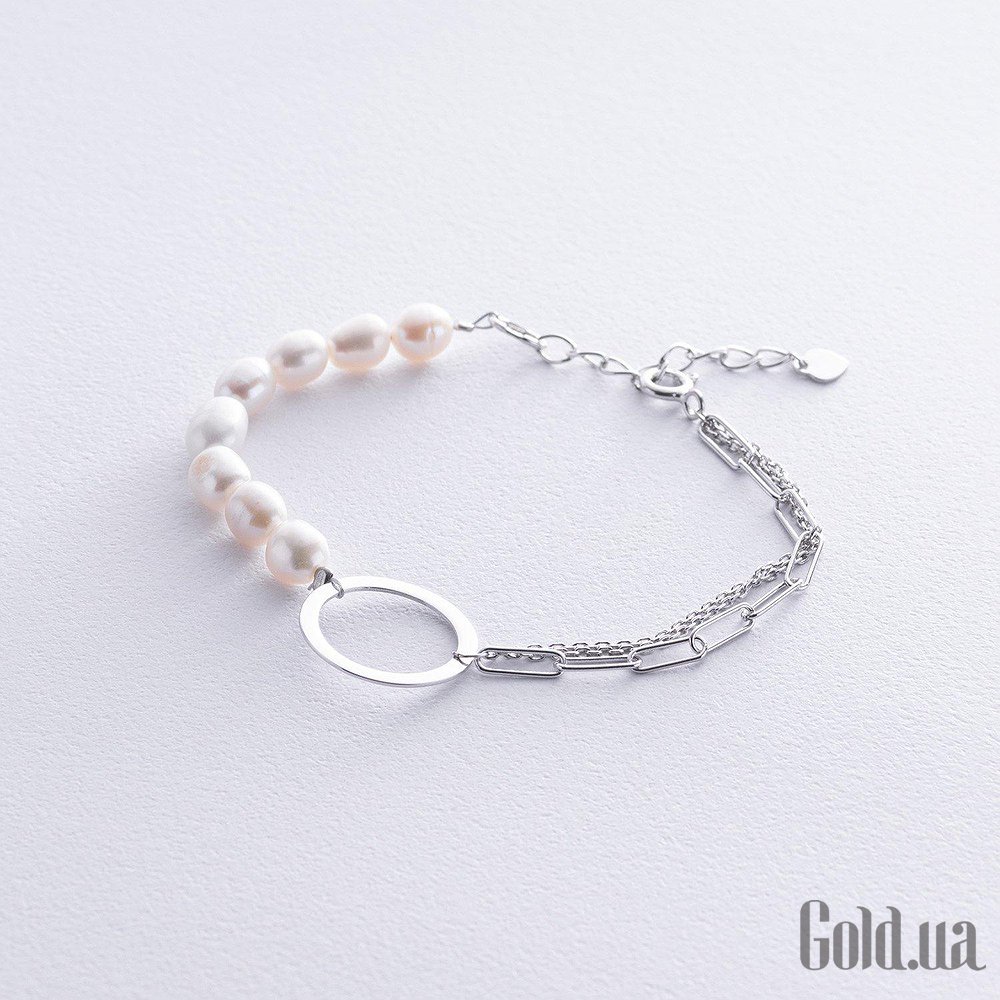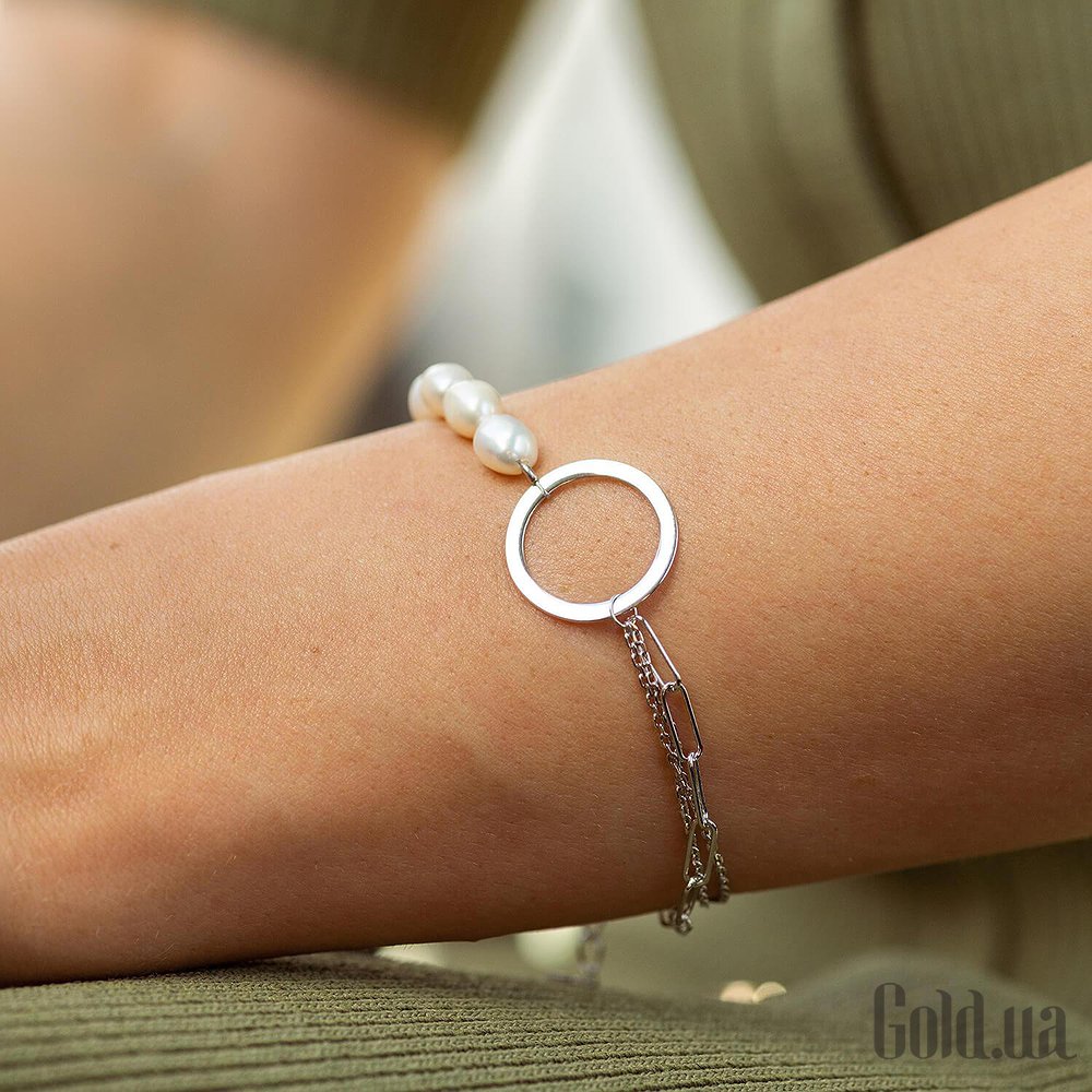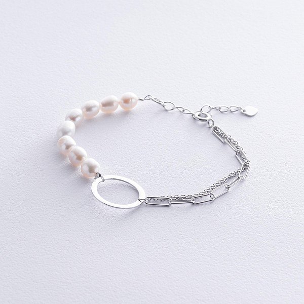 Женский серебряный браслет с культив. жемчугом