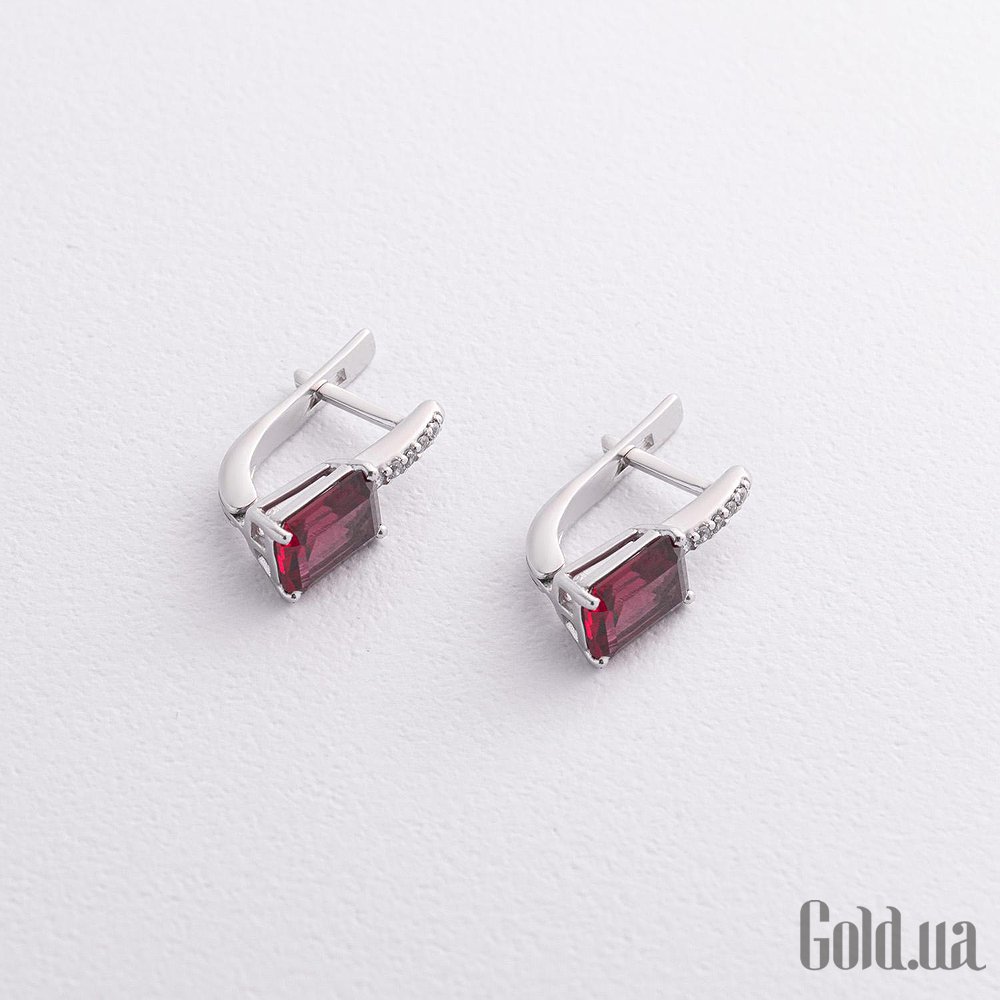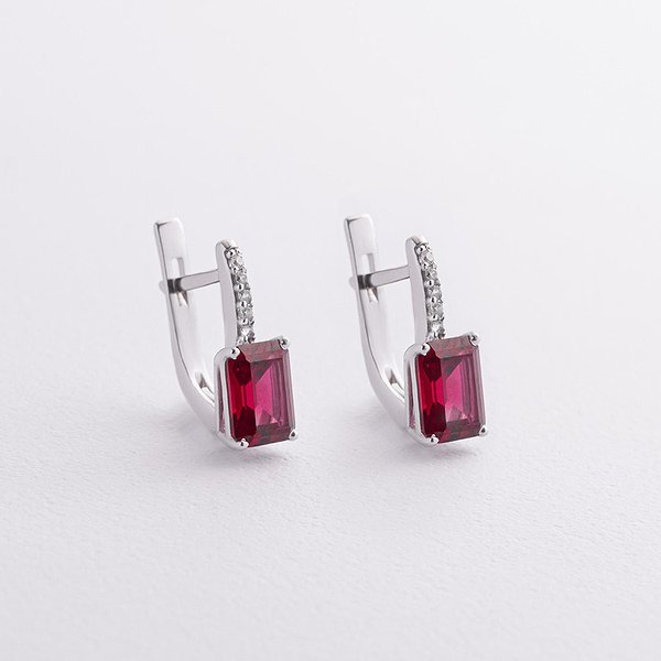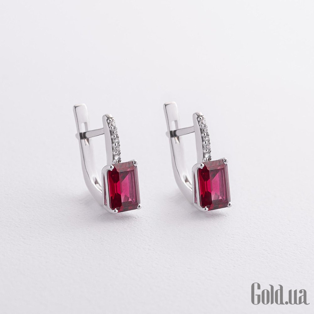 Серебряные серьги с куб. циркониями и синт. рубинами