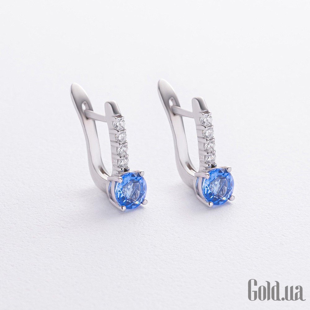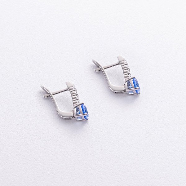 Серебряные серьги с куб. циркониями и синт. танзанитами