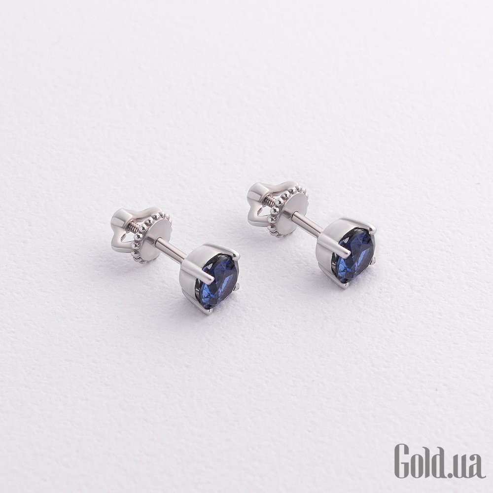 Серебряные серьги с синт. сапфирами