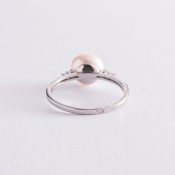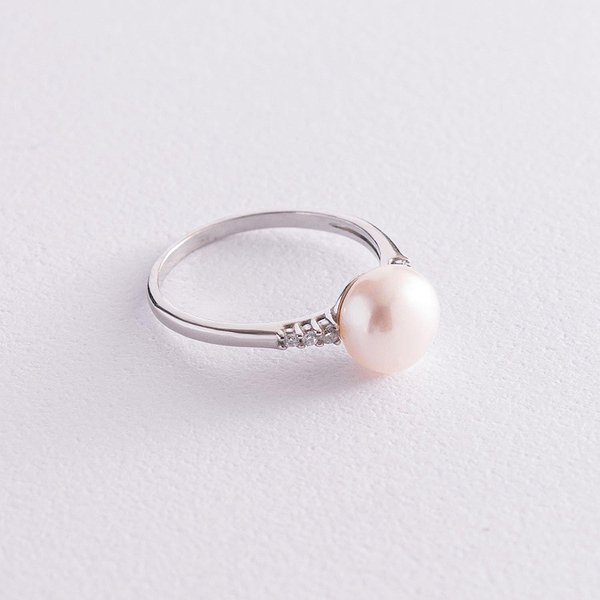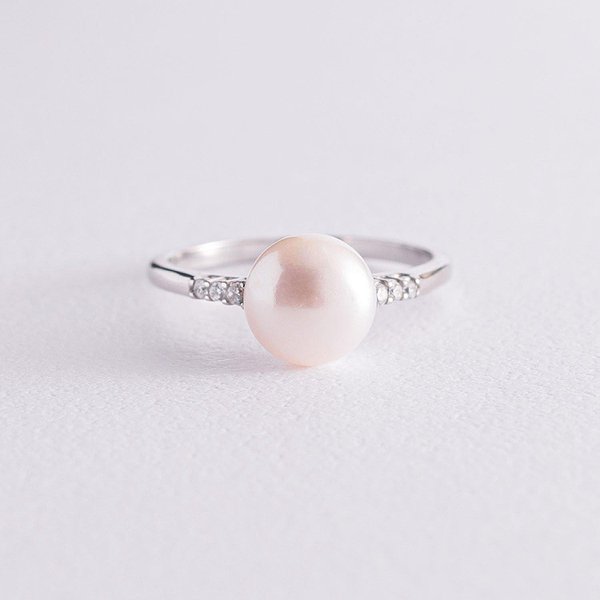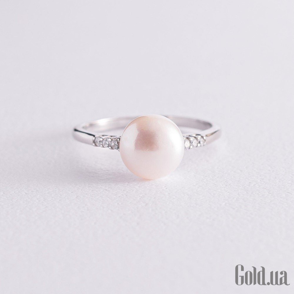 Женское серебряное кольцо с куб. циркониями и культив. жемчугом