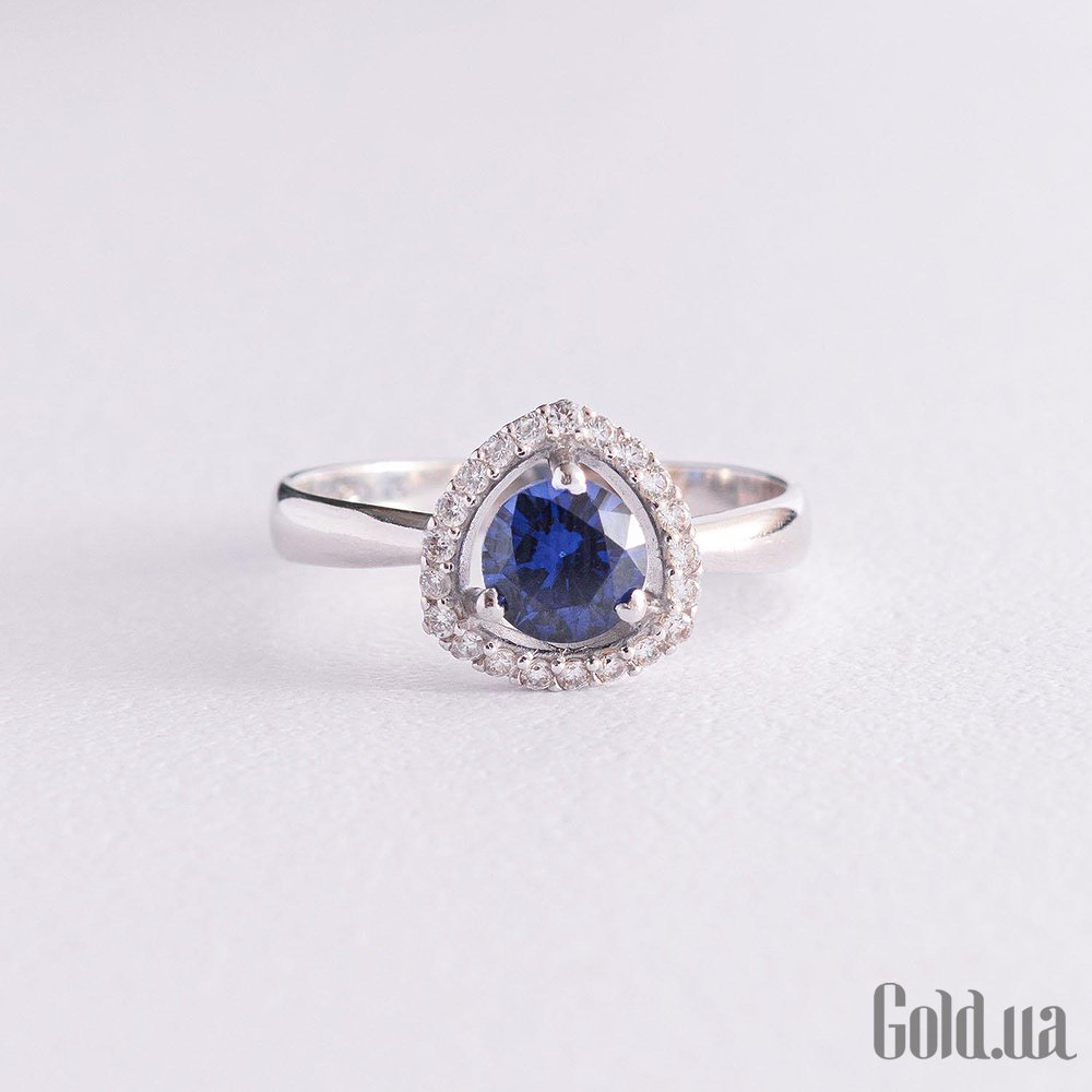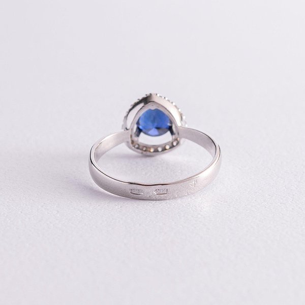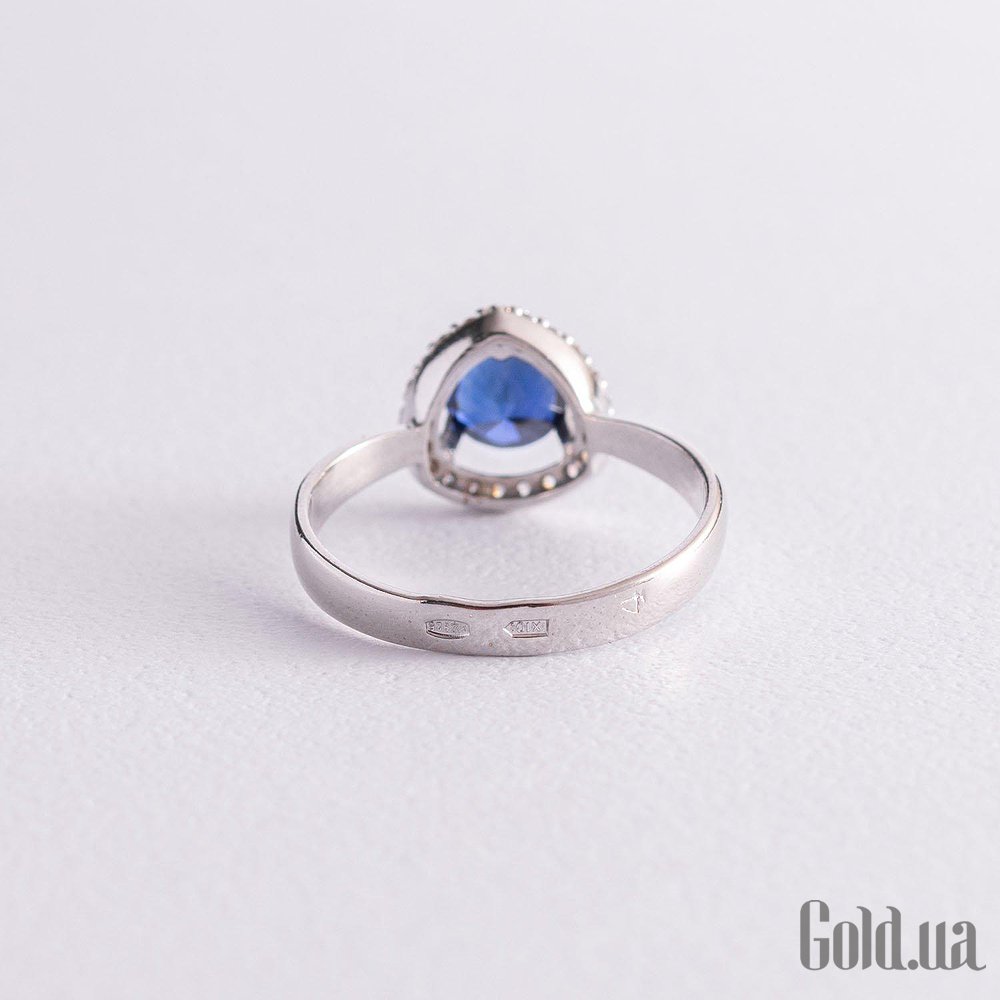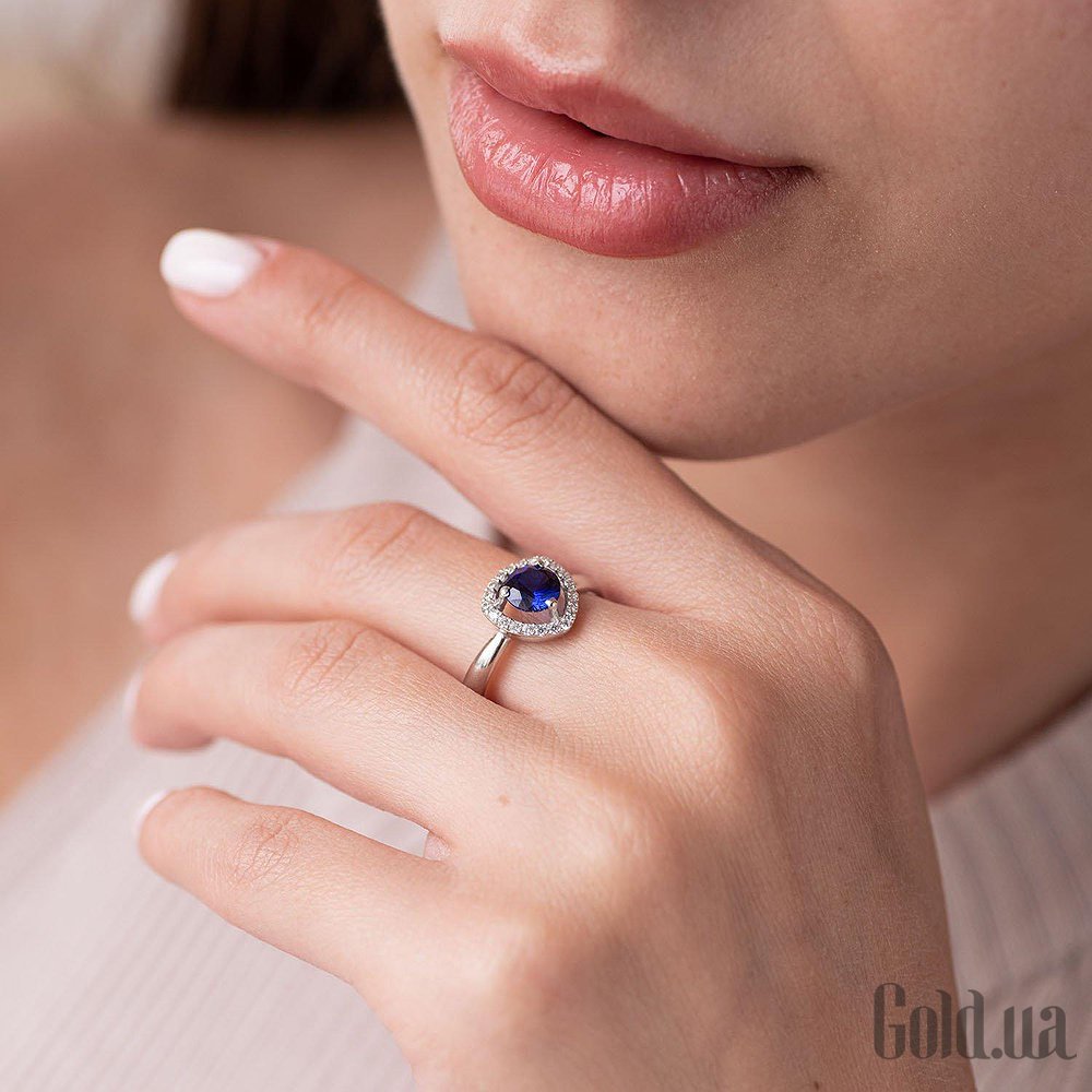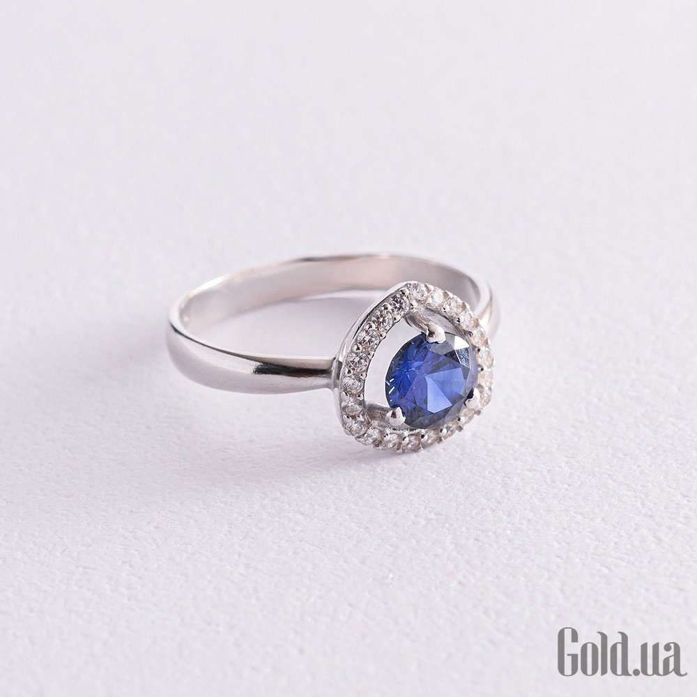 Женское серебряное кольцо с куб. циркониями и сапфиром