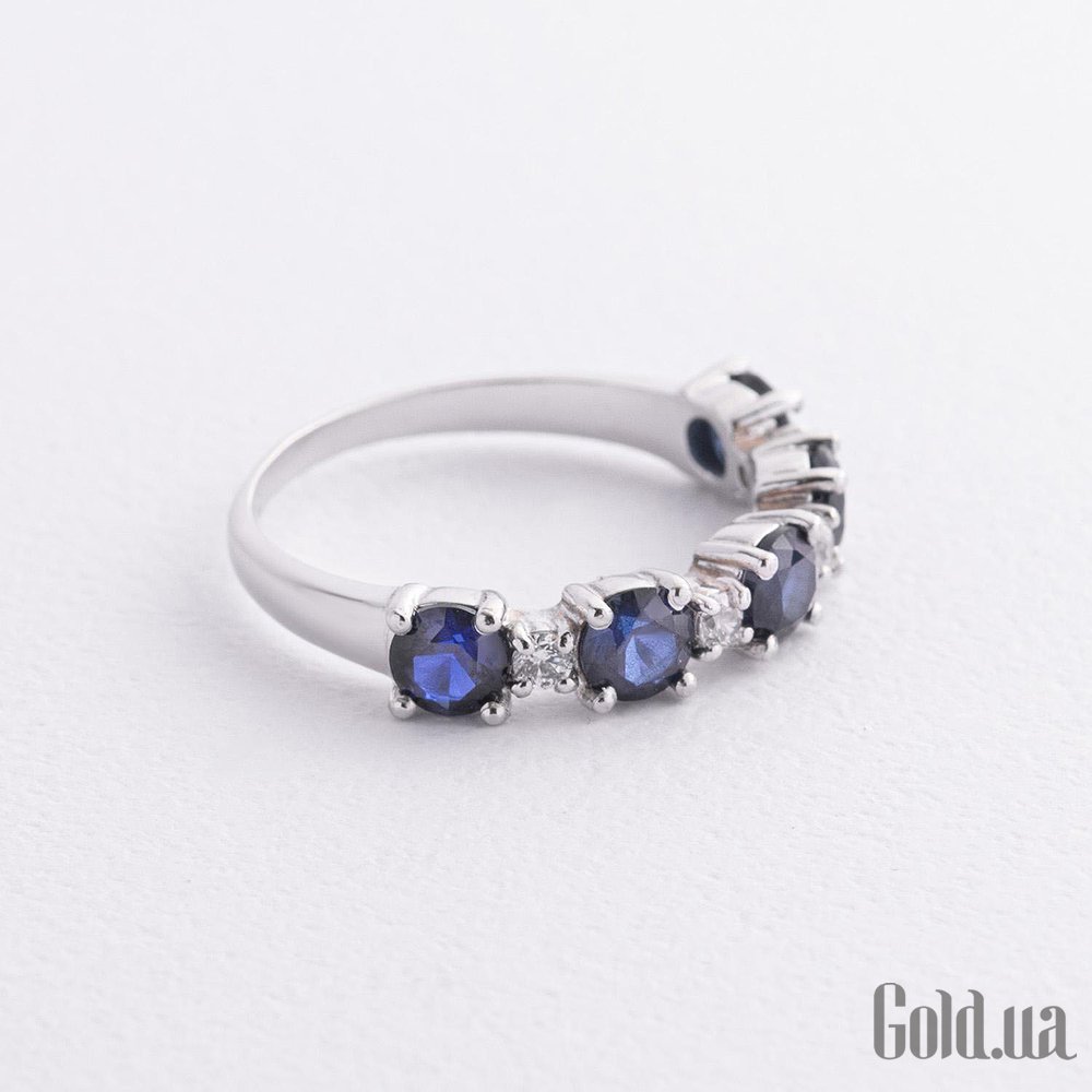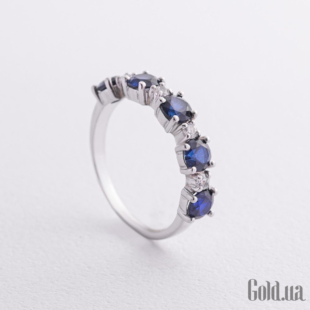 Женское серебряное кольцо с куб. циркониями и синт. сапфирами