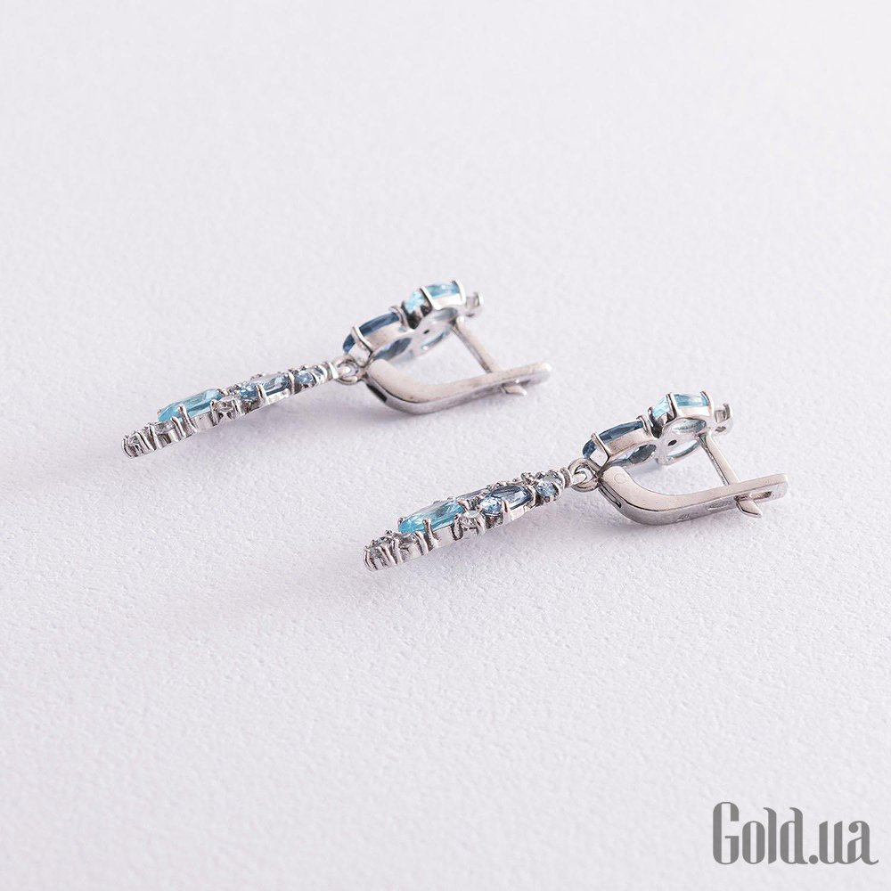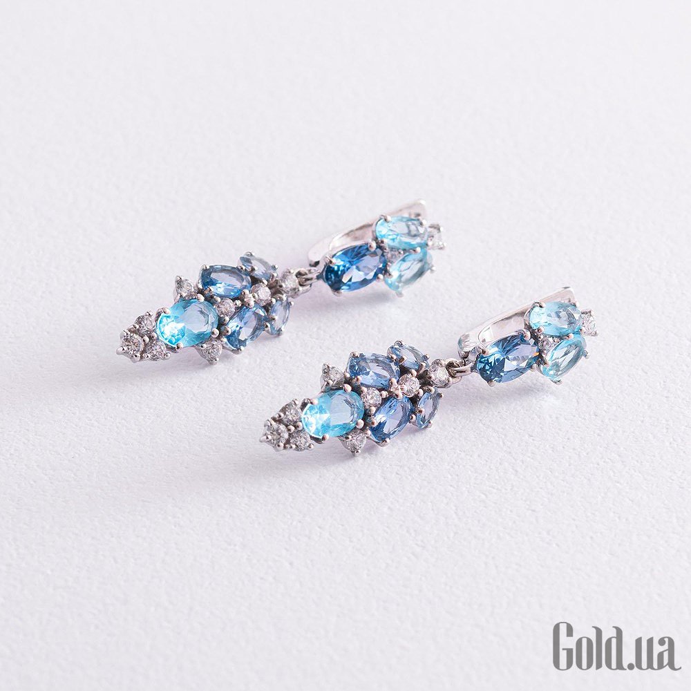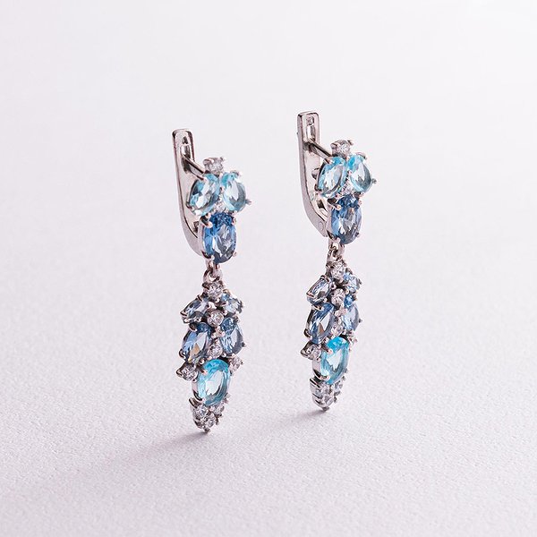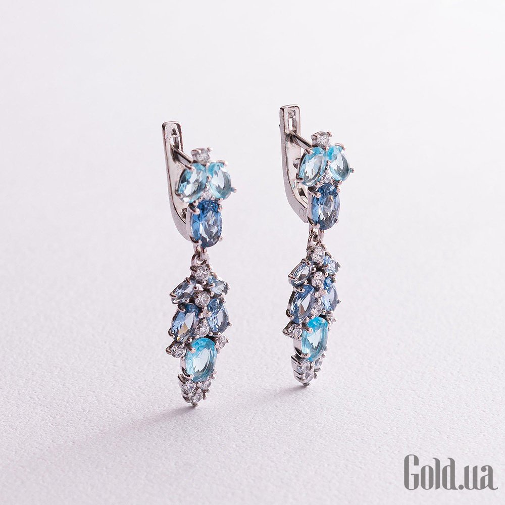 Серебряные серьги с куб. циркониями и кварцами