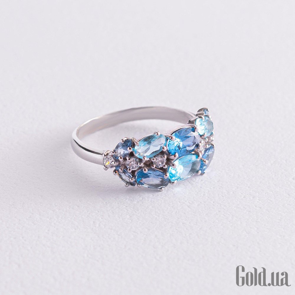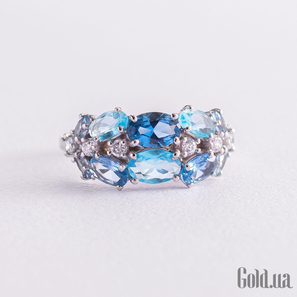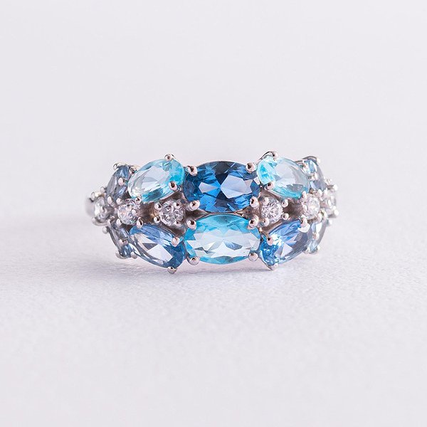 Женское серебряное кольцо с куб. циркониями и кварцами