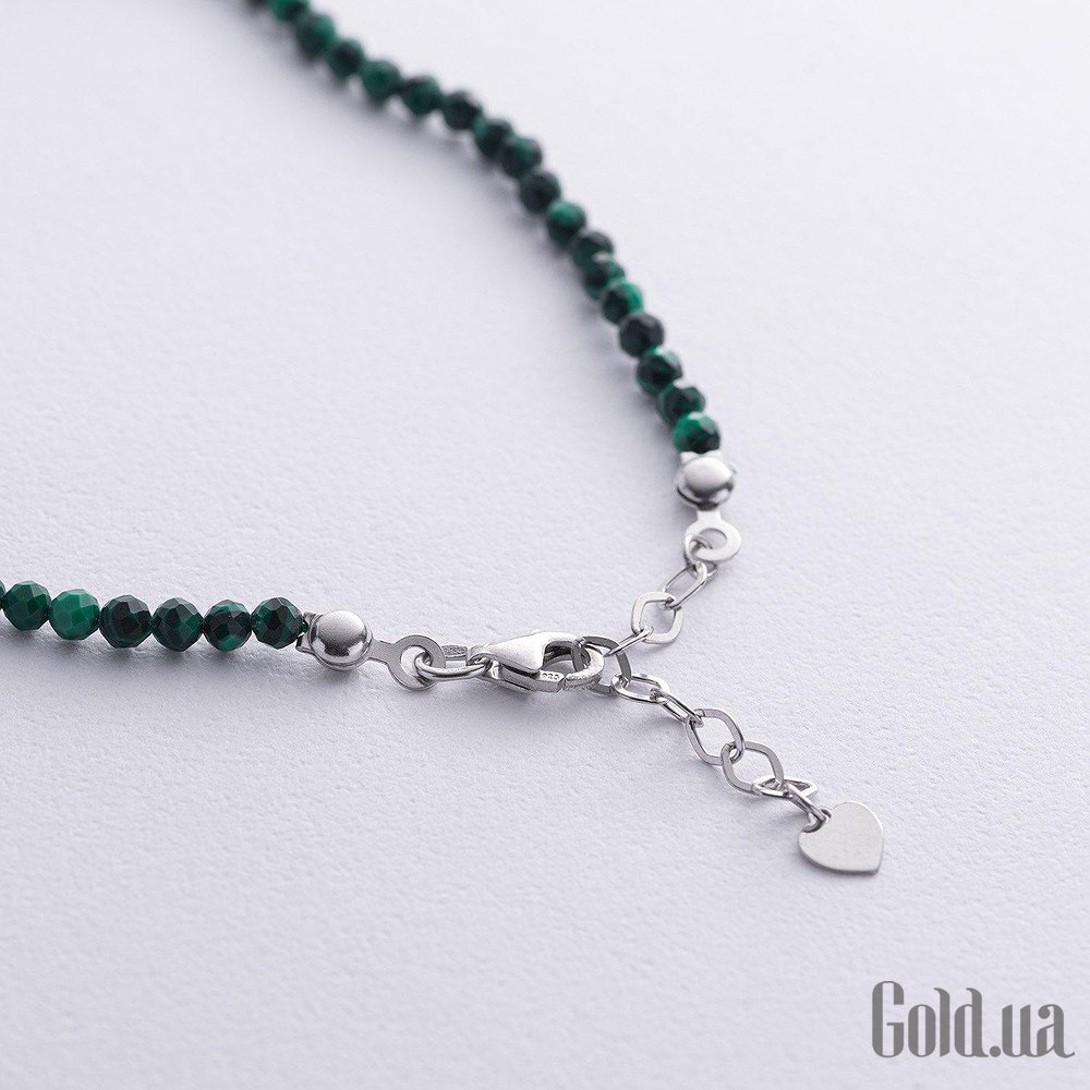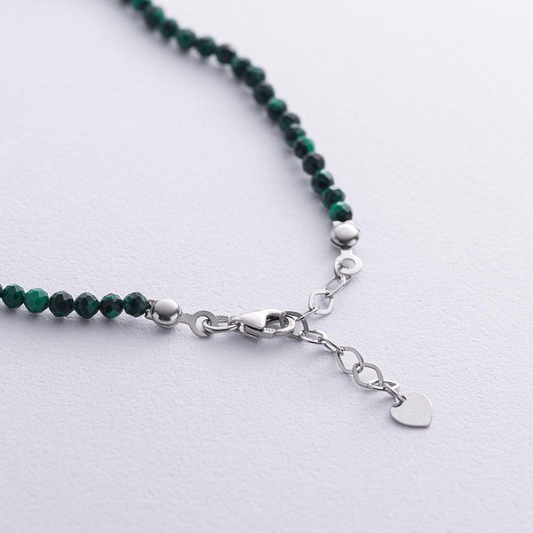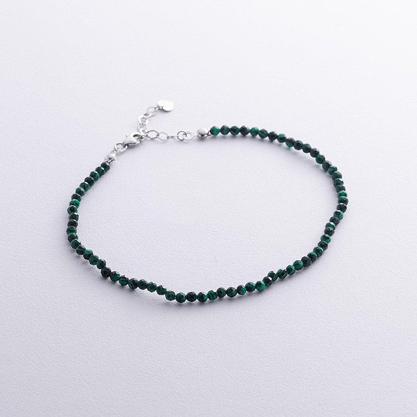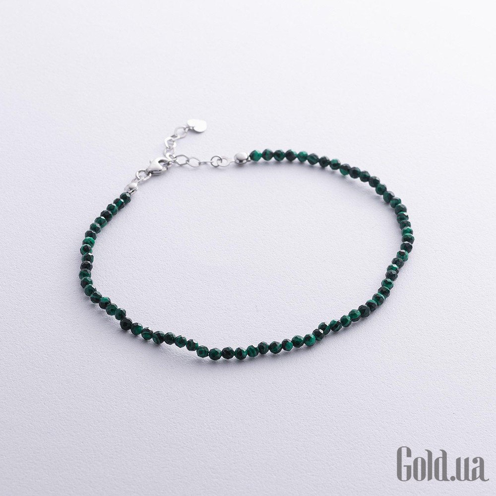 Серебряный браслет на ногу с малахитами