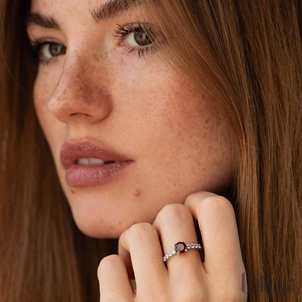 Женское серебряное кольцо с куб. циркониями и пиропом