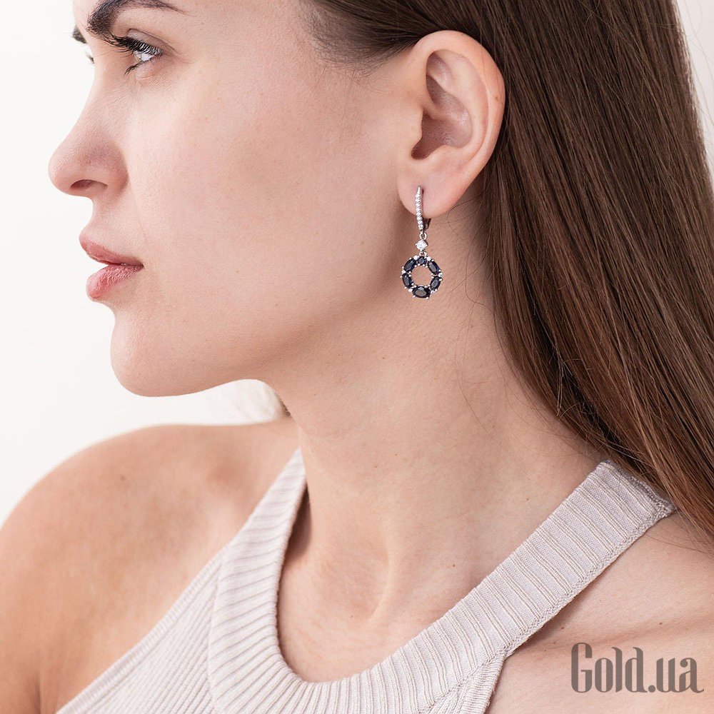 Серебряные серьги с куб. циркониями и синт. сапфирами